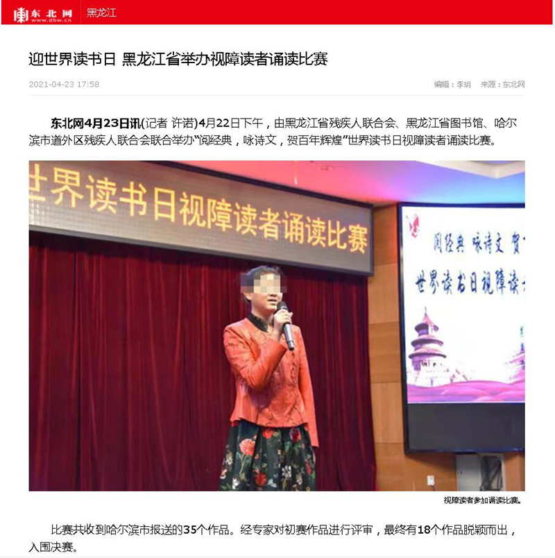 迎世界读书日 黑龙江省举办视障读者诵读比赛