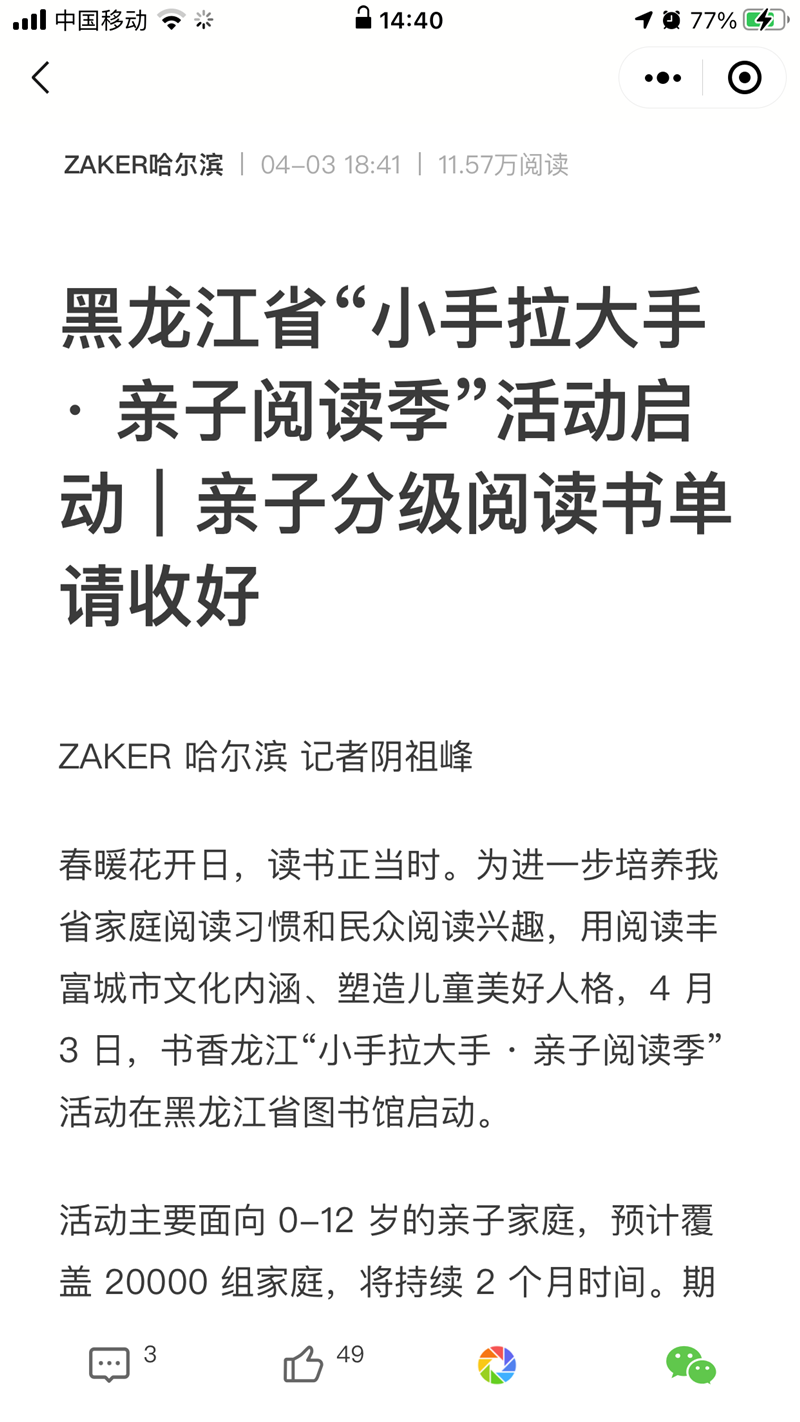 黑龙江省“小手拉大手·亲子阅读季”活动启动/亲子分级阅读书单请收好
