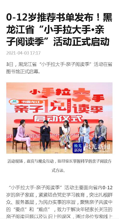 0-12岁推荐书单发布!黑龙江省“小手拉大手·亲子阅读季”活动正式启动
