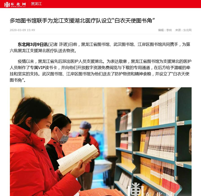 多地图书馆联手为龙江支援湖北医疗队设立“白衣天使图书角”