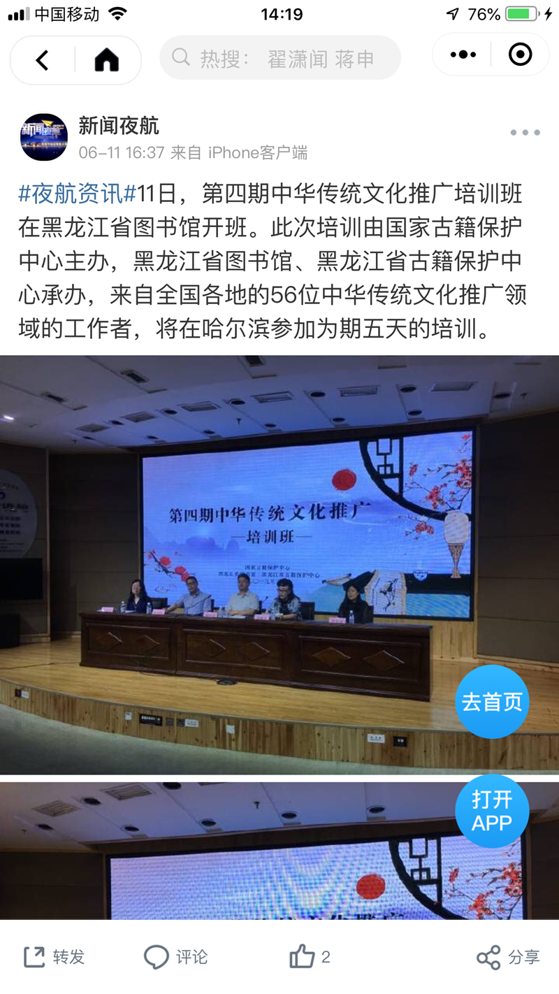 夜航资讯:第四期中华传统文化推广培训班在黑龙江省图书馆开班 龙江书院挂牌成为“中华优秀传统文化实践基地”
