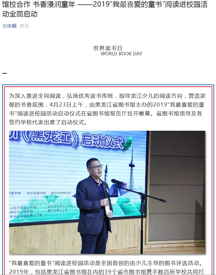 馆校合作 书香浸润童年 ——2019“我最喜爱的童书”阅读进校园活动全面启动