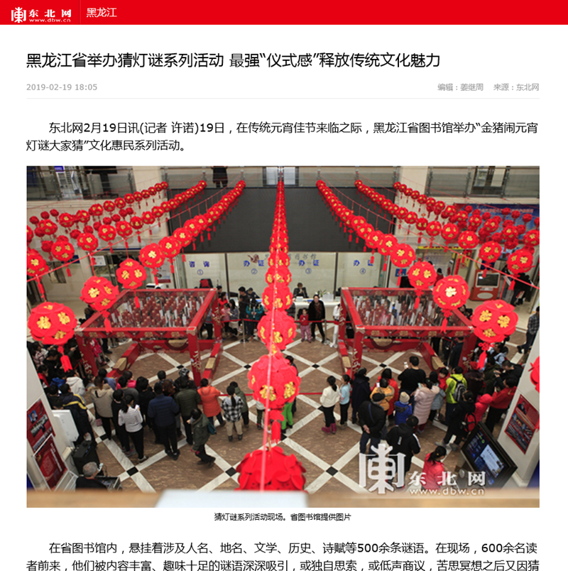 黑龙江省举办猜灯谜系列活动 最强“仪式感”释放传统文化魅力