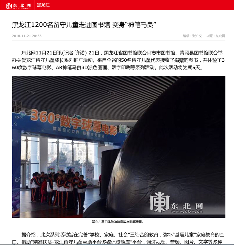 黑龙江1200名留守儿童走进图书馆 变身“神笔马良”