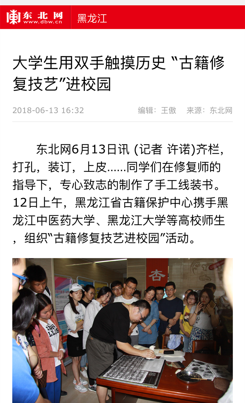 大学生用双手触摸历史 “古籍修复技艺”进校园