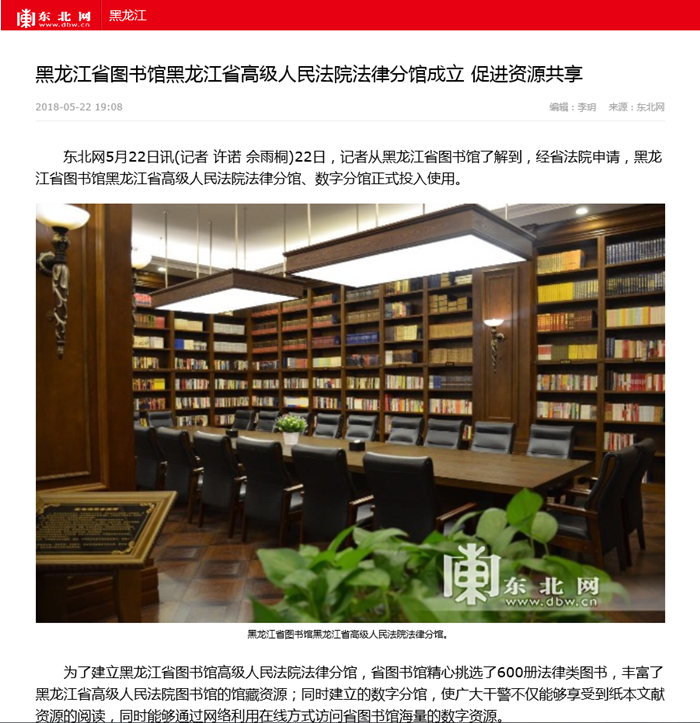 黑龙江省图书馆黑龙江省高级人民法院法律分馆成立 促进资源共享