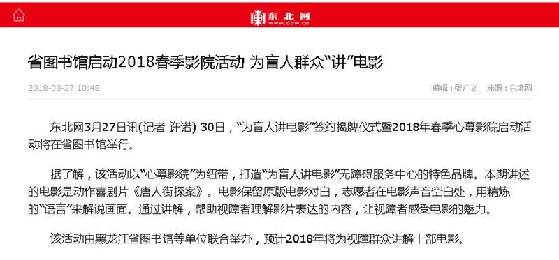 省图书馆启动2018春季影院活动 为盲人群众“讲”电影