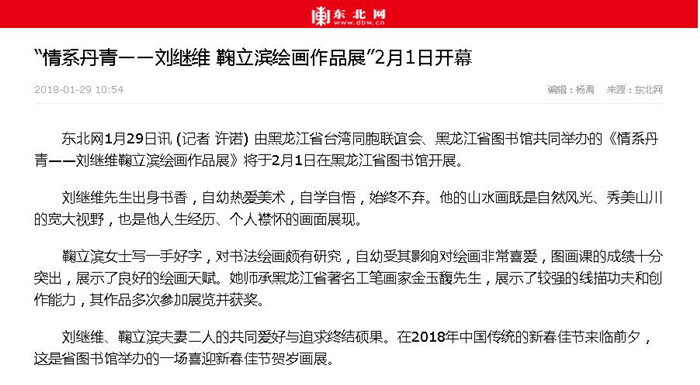“情系丹青——刘继维 鞠立滨绘画作品展”2月1日开幕