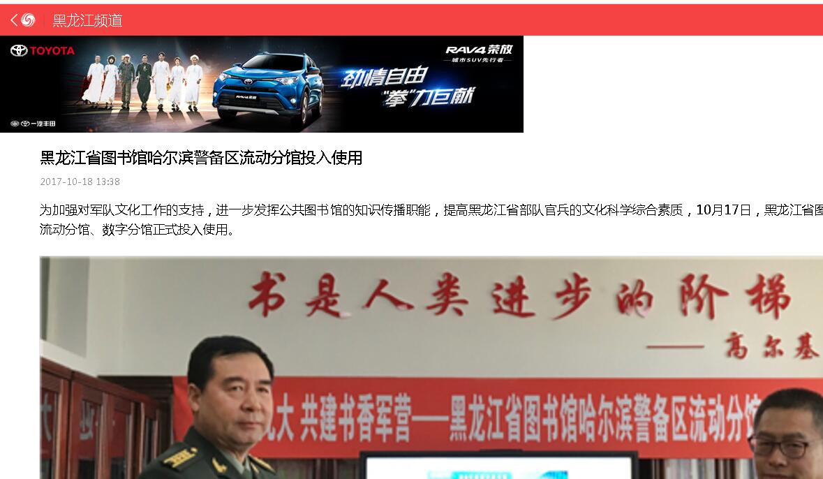 黑龙江省图书馆哈尔滨警备区流动分馆投入使用