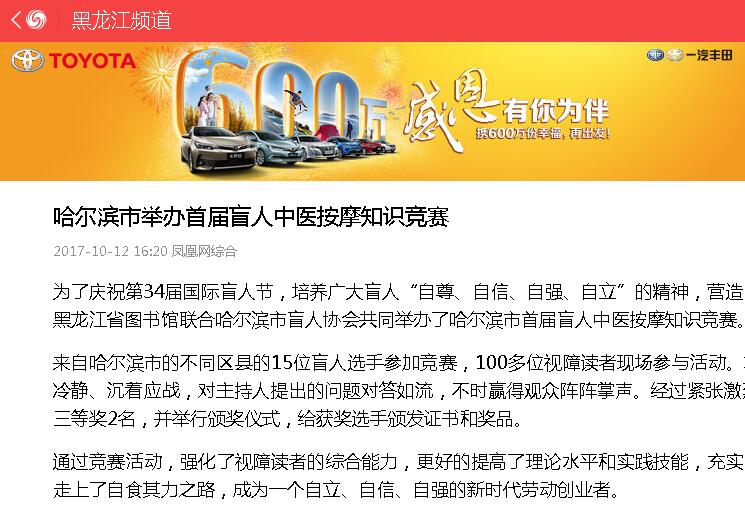 哈尔滨市举办首届盲人中医按摩知识竞赛