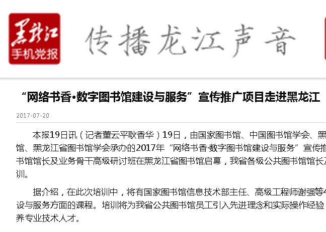 “网络书香·数字图书馆建设与服务”宣传推广项目走进黑龙江