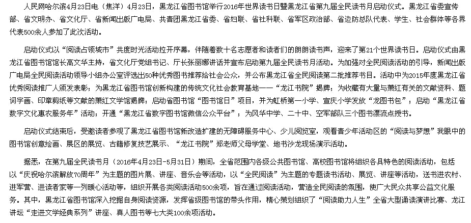 2016年世界读书日暨黑龙江省全民读书月在黑龙江省图书馆启动