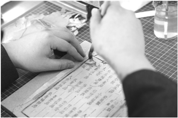 采访过程中,赵启冬正细致修复《疡科选粹》中的一页,“最好就是修旧如旧,但有些书破损太严重,只能给它修旧如新。修复用纸也是很讲究的,一般古书都会有衬页,通常把衬页拿下来补到书页上。”“破烂的古籍上有很多虫吃的洞,我修复时间最久的一本书用了8个月。”古籍修复师张丹玫说。