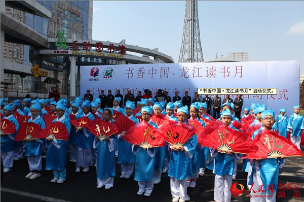 人民网哈尔滨4月23日 电(焦洋)4月23日 上午,“书香中国·龙江读书月”启动仪式在黑龙江省图书馆门前广场举行,标志着黑龙江省及哈尔滨市全民阅读活动正式拉开帷幕。