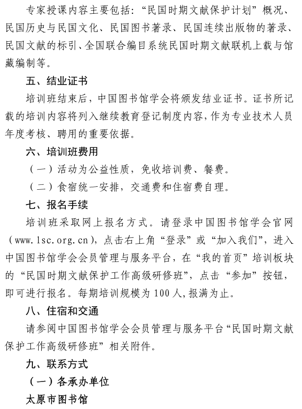 中国图书馆学会关于举办2018年民国时期文献保护工作高级研修班的通知