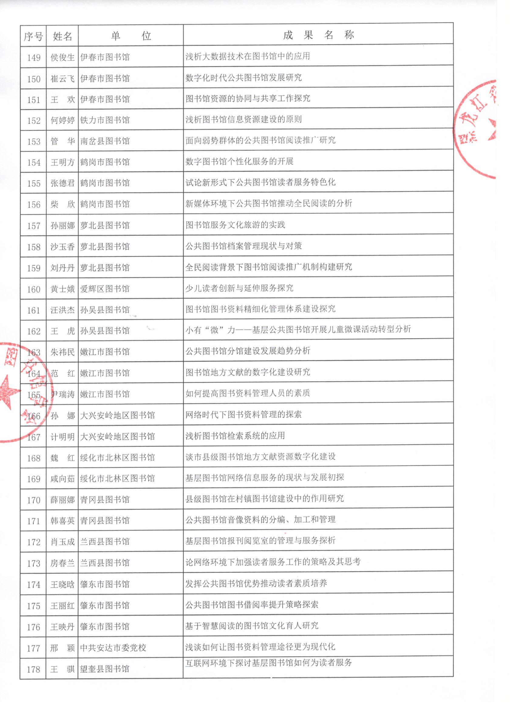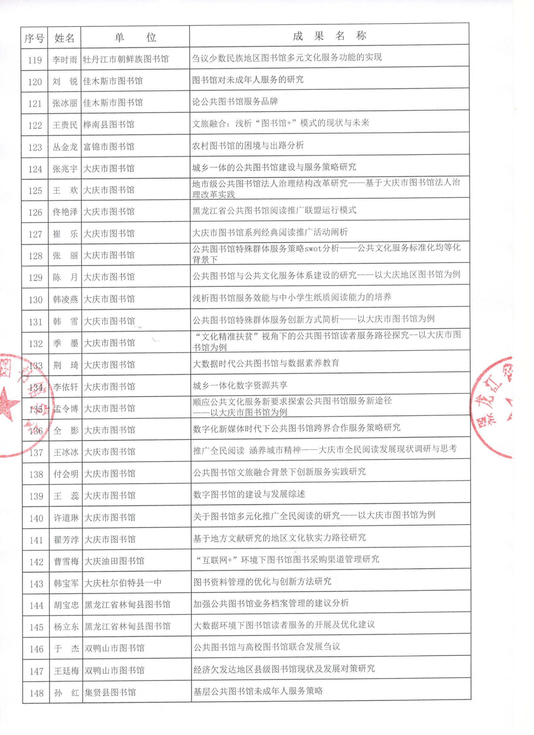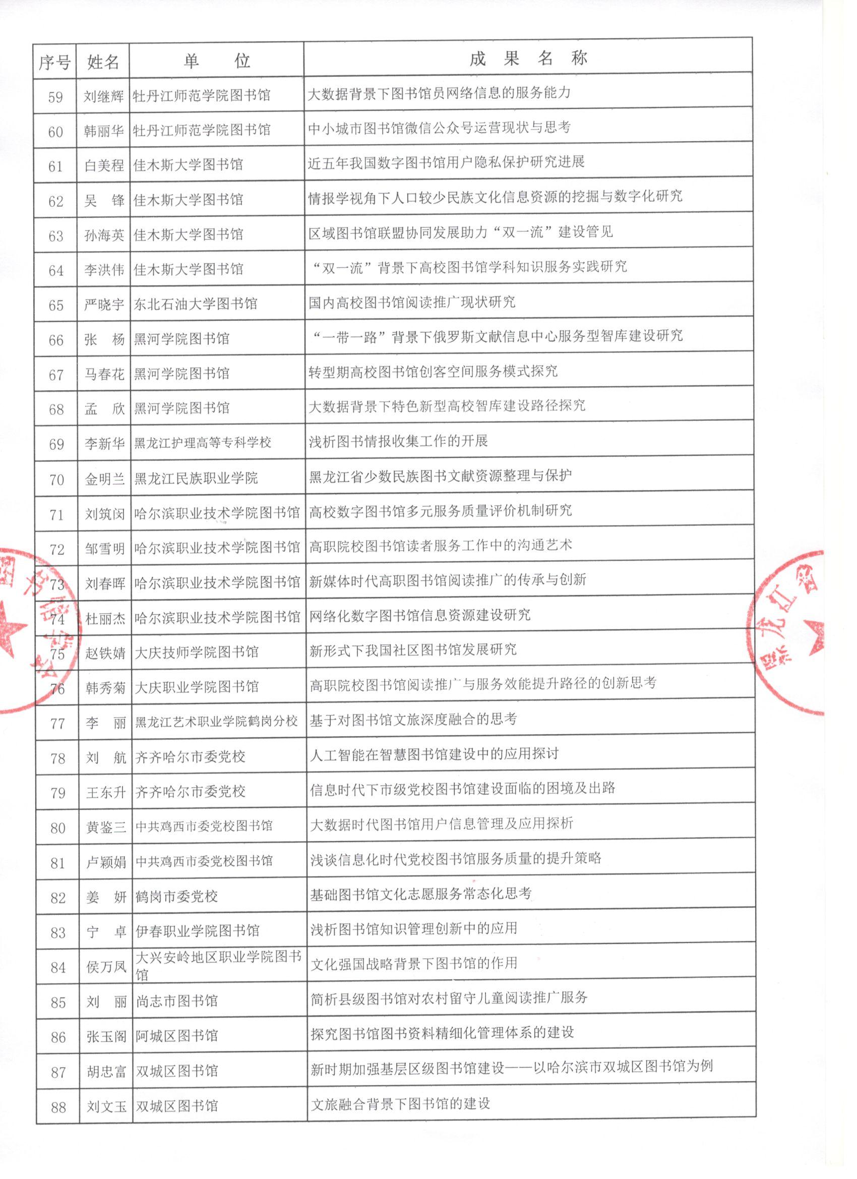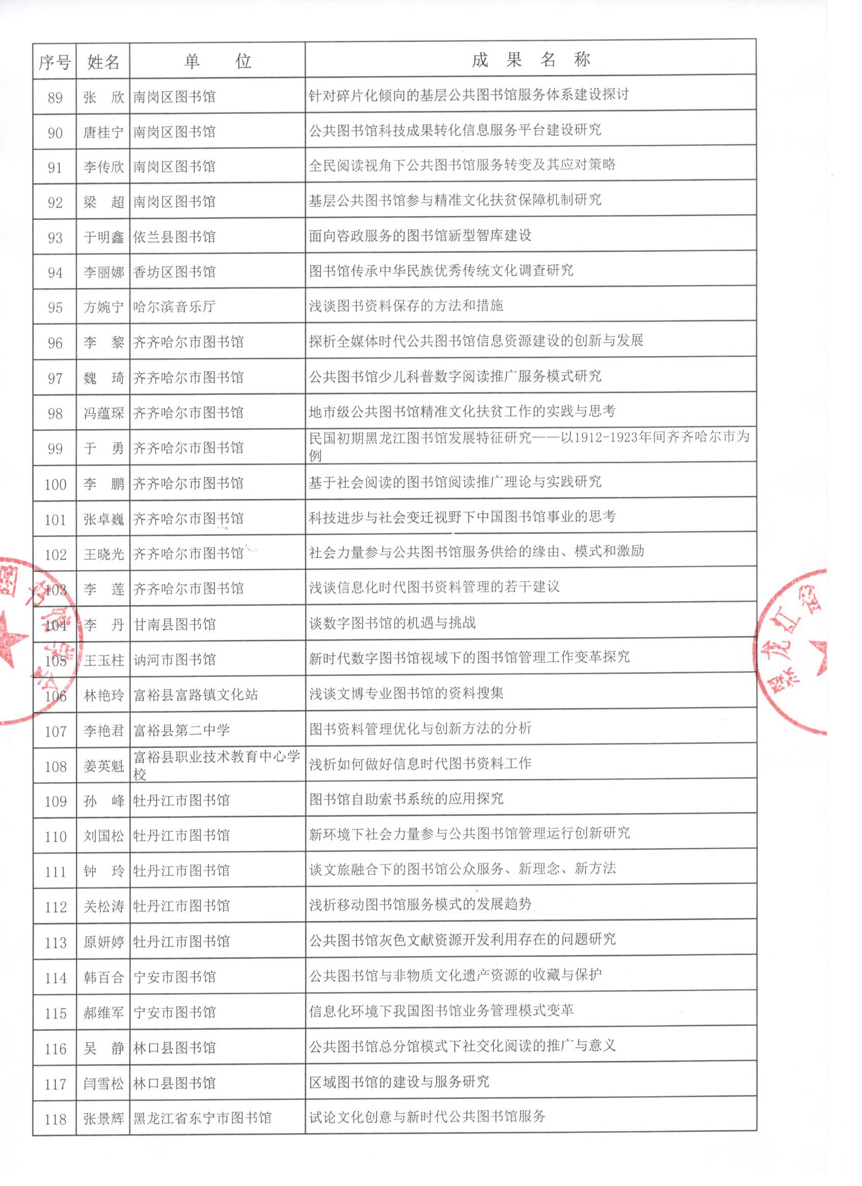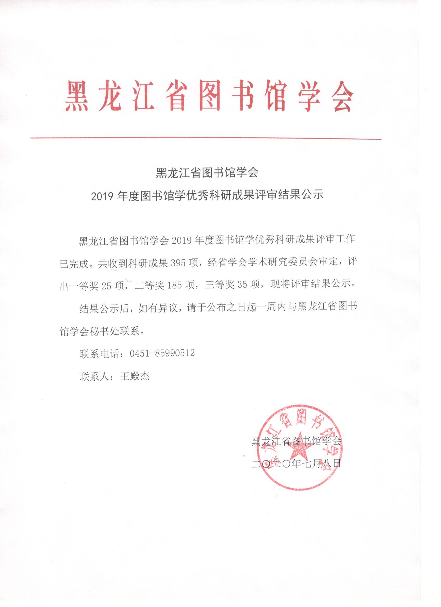 黑龙江省图书馆学会2019年度图书馆学优秀科研成果评审结果公示