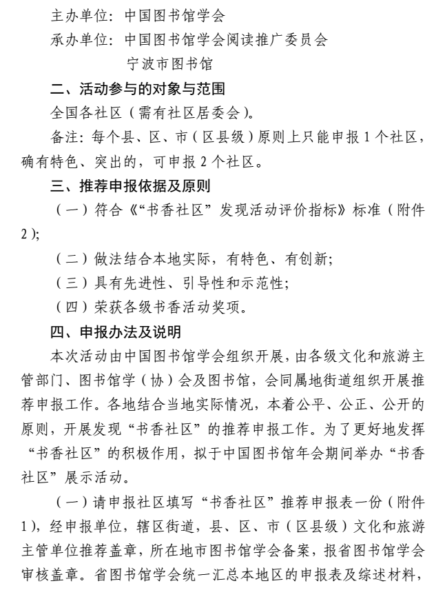 中国图书馆学会关于举办2019年“书香社区”发现活动的通知
