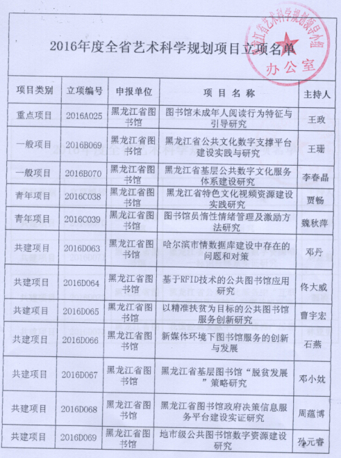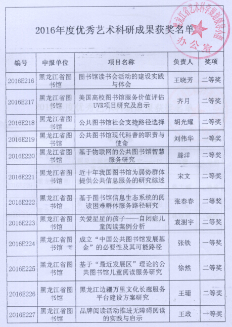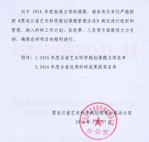 关于2016年度全省艺术科学规划课题立项及优秀艺术科研成果评审结果的通知