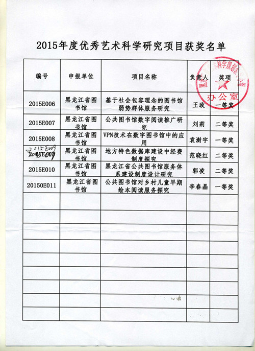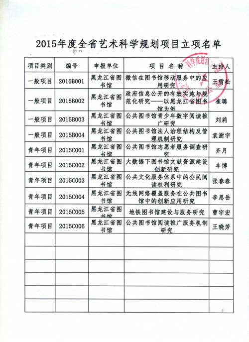 关于2015年度全省艺术科学规划课题立项及优秀艺术科学研究项目评审结果的通知