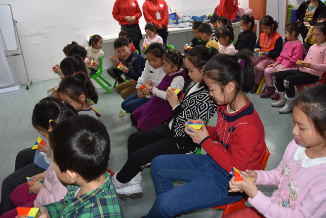 魔方不仅仅是玩具,更是一种休闲放松,提高空间思维能力,提升动手能力的方式,再加上更有刺激和挑战性的竞速、单手、盲拧等玩法,越来越多的人流入“方潮”。第二天的活动主题为“魔方变变变”,旨在通过活动传承科技文化精神。色彩斑斓充满魔力的“小精灵”在孩子们的手中千变万化,这不仅提高小营员们的动手与思考能力,空间想象力,更加深了他们之间的交流和友情,小小魔方让这群志同道合的好朋友,在学习中快乐、快乐中自信、自信中向上。
