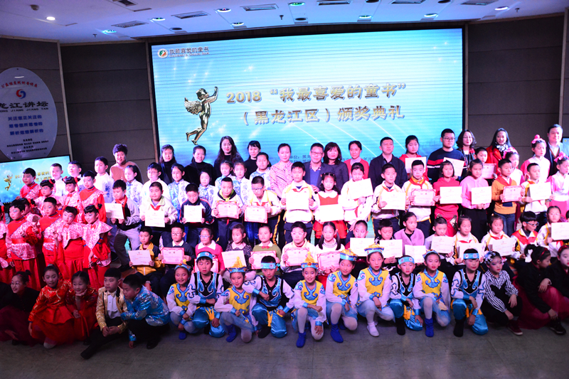 12 月 10 日上午, 2018“我最喜爱的童书” 阅读推广活动黑龙江地区颁奖典礼在黑龙江省图书馆报告厅举行。30余名来自黑龙江省9所小学的少年儿童分获童书评选各类奖项,黑河市图书馆、绥化市北林区少儿图书馆、伊春市金山屯区图书馆获阅读推广贡献奖,哈尔滨市抚顺小学、哈尔滨市继红小学等9所小学校获优秀组织奖。黑龙江省图书馆馆长高文华、三所地市图书馆领导以及各学校的校领导参加了本次活动。