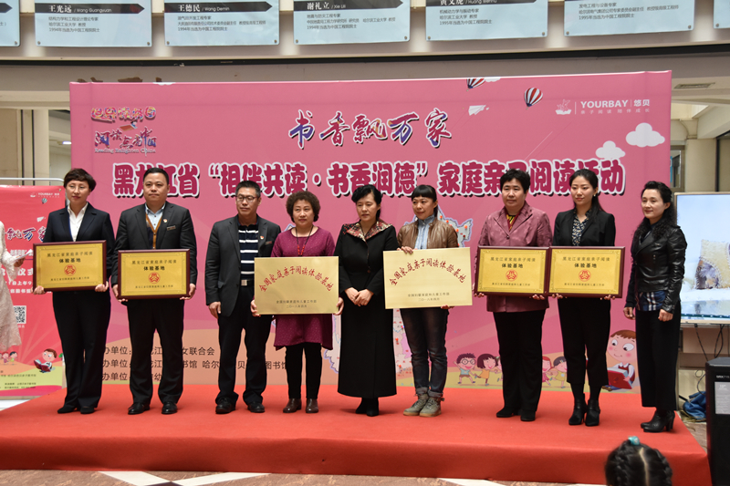 启动仪式上高馆长对省图书馆今年开展的全民阅读工作进行介绍,白锦婵副主席也对省图书馆亲子阅读服务工作给予高度认可,并向全省6家包括黑龙江省图书馆在内的阅读机构颁发爱心阅读基地牌匾。之后由公益妈妈领读者和孩子们共同表演国家少儿馆馆长王志庚的《领读者》,家长代表宣读倡议书,最后由领导点亮黑龙江省地图,全城阅读接力活动正式启动。
