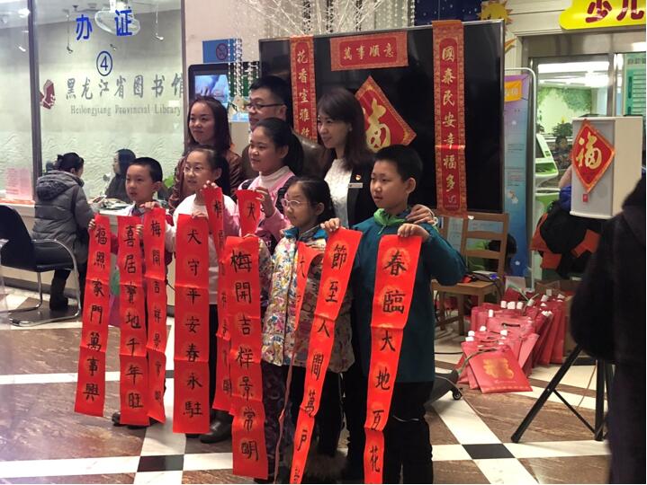 最后,少儿部程岩主任为参加活动的每一位小书法家们都赠送了省图书馆的新春大礼包,里面有对联、各种福字、窗花还有红包,活动在集体合影留念中圆满结束。