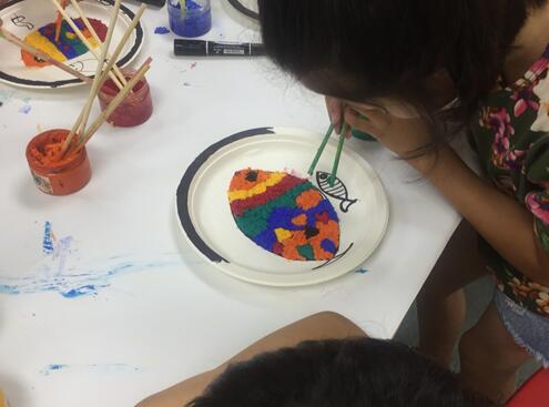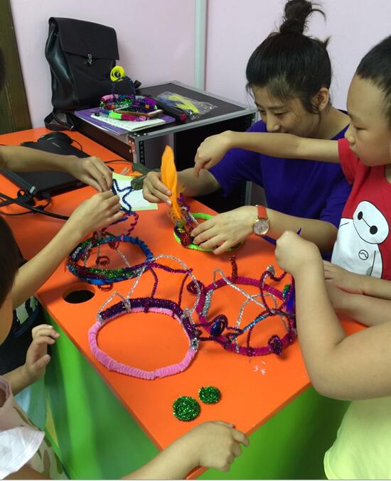 活动中,哈尔美术基地的小梁老师和小读者们分享了《米莉的帽子变变变》《独一无二的你》《小种子》《影子》《顽皮公主万万岁》《小牛的春天》等绘本故事,进行了纸浆盘艺,毛根皇冠,仿铜土著人,图腾柱,花瓶艺术,笔上精灵等美术作品创作。每个故事,孩子们听的入神;透过画面,孩子们想象丰富;每个作品,孩子们认真创作,他们充分发挥自己的创意与想法,亲自动手体会创作的快乐!这7天,孩子们是快乐的!