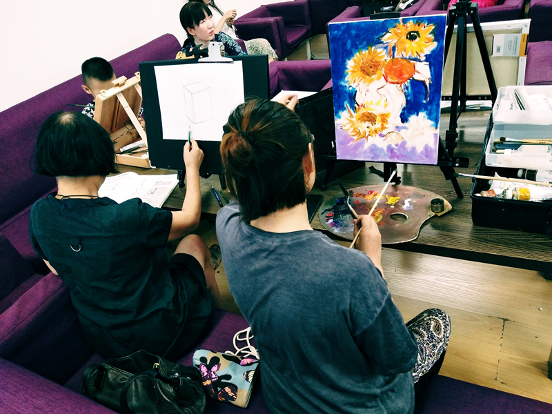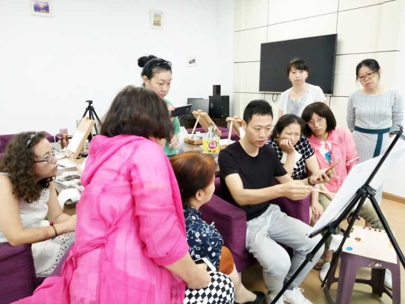 结束了理论部分的学习,杨博老师挑选了适合大家绘画程度的油画作品作为示范,带领大家一起画起来!从起稿开始,杨博老师耐心的讲解油画的每一个步骤,并对同学们提出的问题一一解答,例如如何构图,如何用笔,颜色的运用等。看得出来,大家的学习热情都非常高!