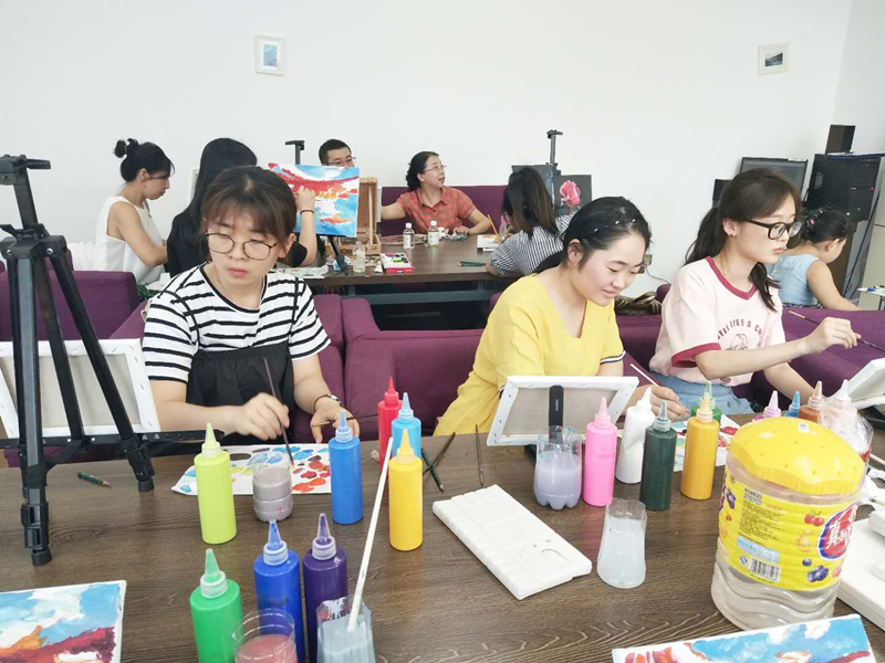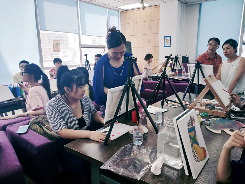 今日,沙龙房间满是新老学员,几乎所有的桌椅已被占满,有颜料、有画架用布框、有我们挥舞画笔的灵巧的手……