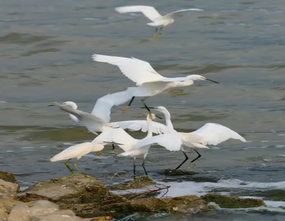 “雪衣雪发青玉嘴,群捕鱼儿溪影中。”开首两句,并不是什么特殊的赞语,而是通俗朴白的写实,然而就是这样一落笔,一群“雪衣公子”洁白美丽的形象,夕阳西下,蔽于溪影之中待机捕食鱼、虾的习性和机智,却全被描绘出来了,同时,诗人的迷恋之情也寓于其中了。白鹭那洁白的羽毛很美,故有“雪衣”、“雪衣公子”的美称。诗人正是被白鹭的这一特色所吸引,所以从这里切人表现白鹭的精神,表达自己的迷恋之情。而两个“雪”字的连用突出的是白鹭的“形”,其“神”尚未现,诗人巧妙地把它放在惊飞远去的情景中精心描绘,以“碧山”相托,以“梨花”比喻,笔触空灵,而白鹭的精神也就显露出来了。第三、四句:“惊飞远映碧山去,一树梨花落晚风。”一个“惊”字,便把眼前之景推向了远处,顺势以“碧山”映衬出飘然远去的白鹭,而这群飘飞的白鹭又装点了青绿色的远山。山青鹭白,晚霞渐逝,这是一幅优美的图画。真是情景交融、自然浑成。可是,诗人并没有满足于此,他接着展开想像的翅膀,好像暗暗地问了自己一句:“远映碧山”的点点白鹭究竟像什么呢?哦,像雪白的梨花在静谧而轻轻的晚风中飘然落下的美妙景象!