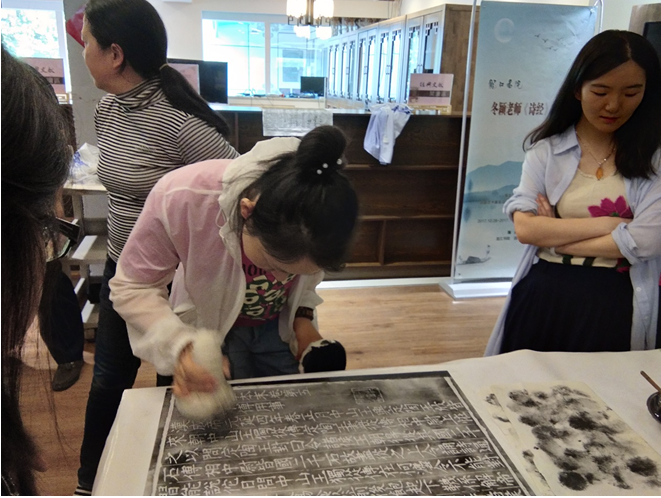 结业式后,在修复老师的指导下,学员们进行了碑刻传拓实践。