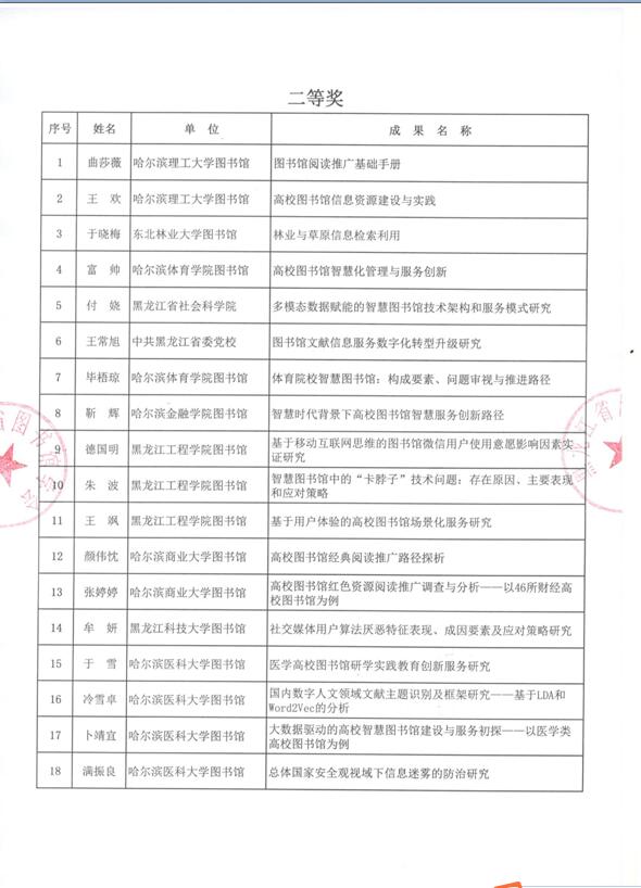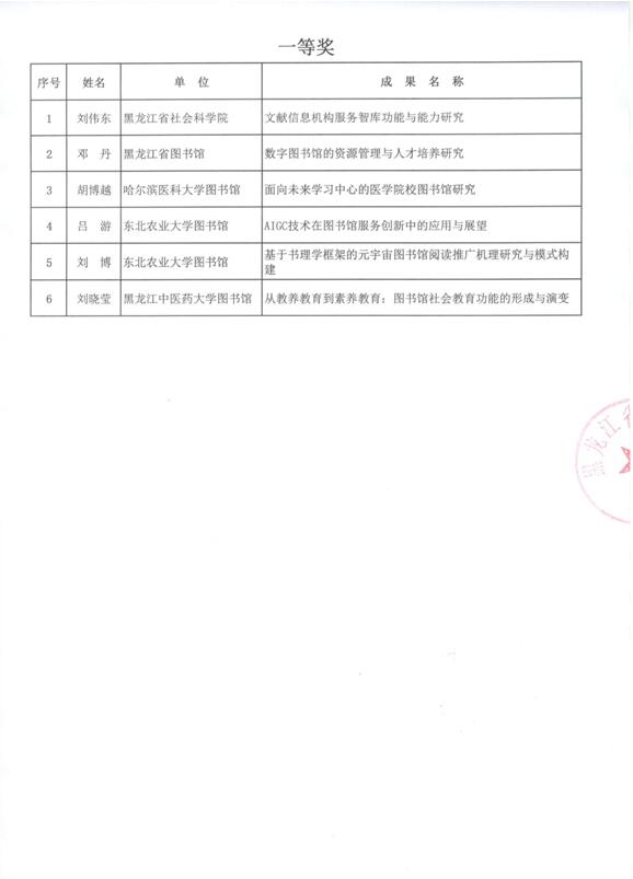 黑龙江省图书馆学会 2024年度图书馆学优秀科研成果评审结果公布