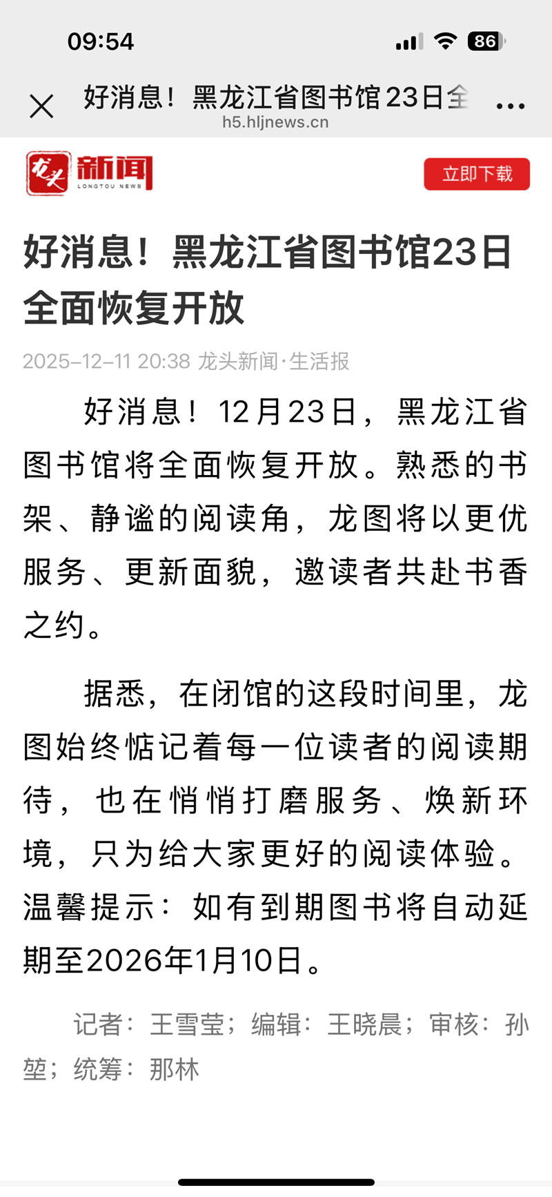 好消息!黑龙江省图书馆23日全面恢复开放