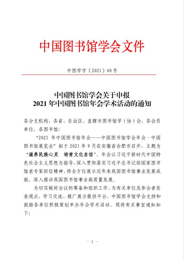 中国图书馆学会关于申报2021年中国图书馆年会学术活动的通知