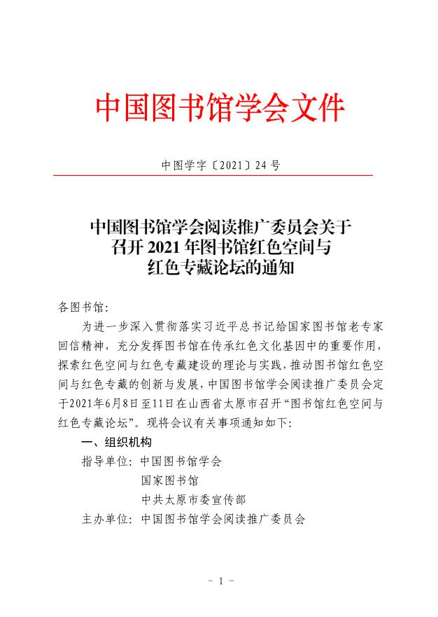中国图书馆学会阅读推广委员会关于召开2021年图书馆红色空间与红色专藏论坛的通知
