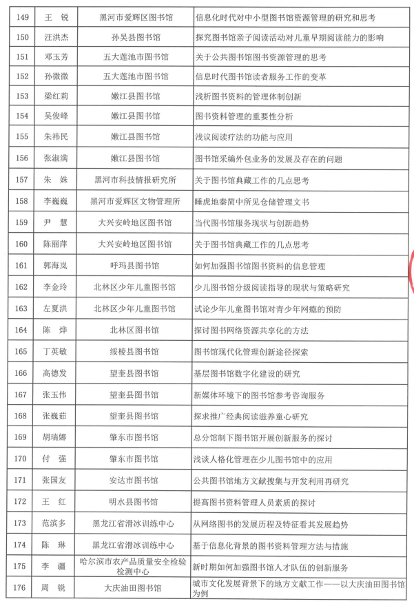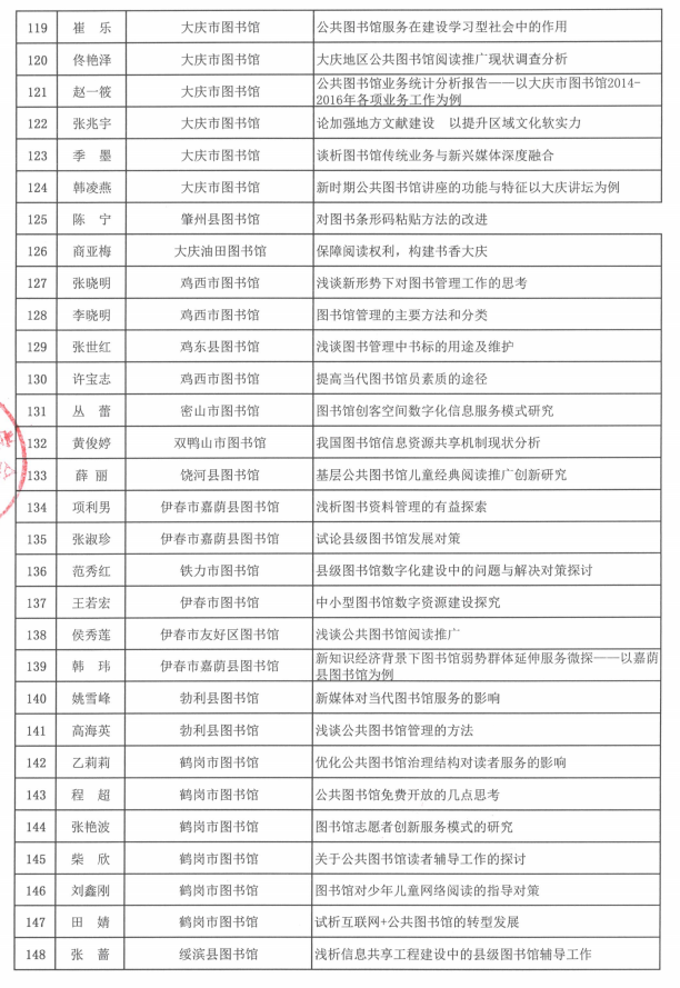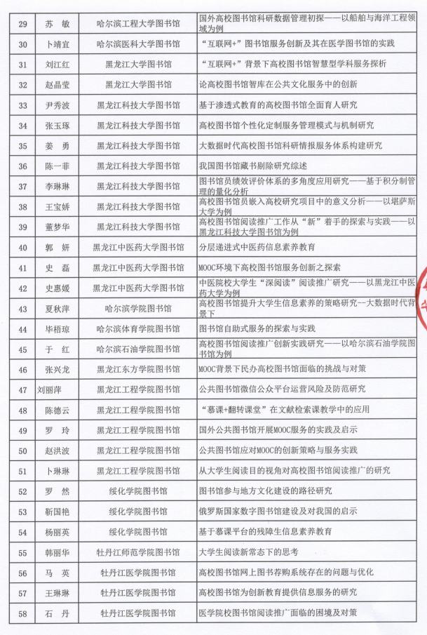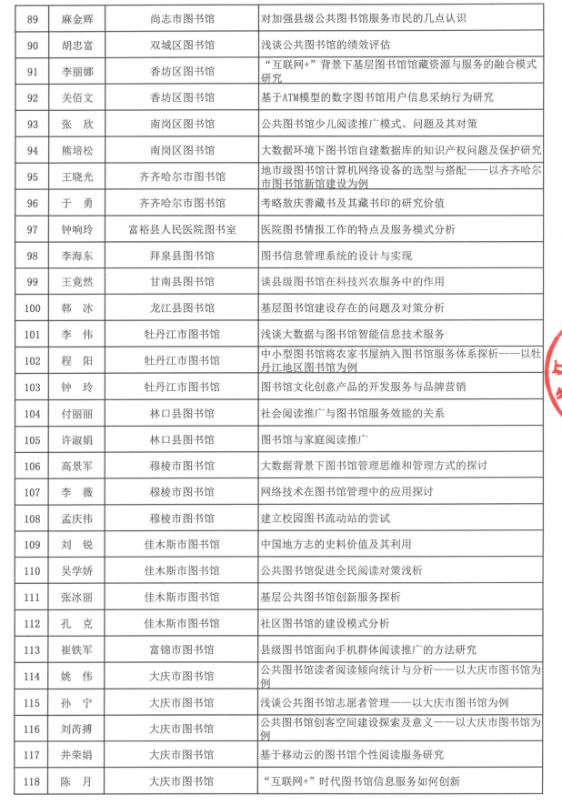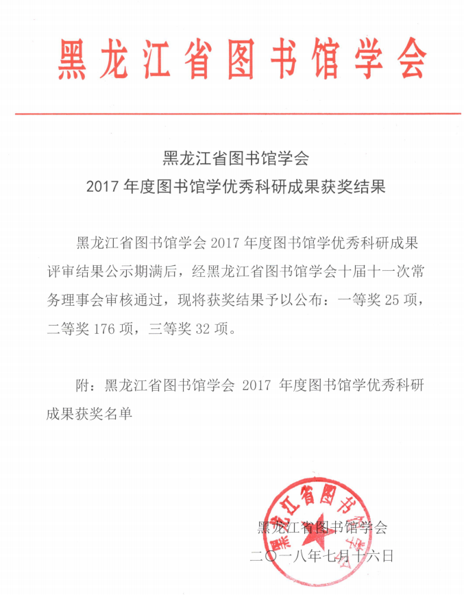 黑龙江省图书馆学会2017年度图书馆优秀科研成果获奖结果
