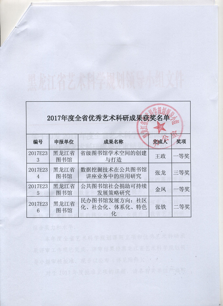 关于2017年度全省艺术科学规划课题立项及优秀艺术科研成果评审结果的通知